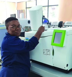 ZAMASWAZI DLAMINI WearCheck transformer laboratory technician Zamaswazi Dlamini operates a gas chromatograph – a vital tool for detecting dissolved gases that reveal early signs of transformer faults